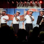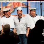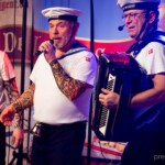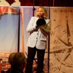 Såvel før som efter Murer Kjelds foredrag var det De Lystige Sømænd, der satte gang i 3-fjerdedels takterne og øste deres flotte flerstemmige sang ud over forsamlingen. Hvor er det befriende, når alle kender de sange, der bliver sunget og når kvaliteten fra korsangerne er i top. At se publikum både svinge og synge med giver altid en god stemning. ‘Mandalay’, “Jeg har en ven – en rigtig sejler”, Fiskerpigens Sang” “Sangen om Martha” – ja, en kavalkade af gode gamle sømandsviser, og såmænd også et par strofer fra nye sange, skrevet af nvankundige Vagn Egon Jørgensen. En højt estimeret konservatorie- og universitetsuddannet kor- og orkesterdirigent, hvis evne til at dels at sætte korstemmerne sammen og samtidig håndtere den lækre knapharmonika var eminent. Fra ham blev humøret spredt via de 3 øvrige gruppemedlemmers samspil ud til et forventningsfuldt publikum, som til fulde fik forventningerne indfriet. Der lød taktfaste klapsalver gentagne gange i aftenens løb.